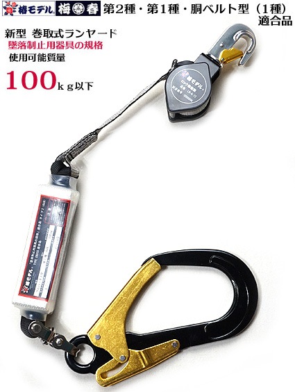 椿モデル 巻取式ランヤード 3タイプ適合(第2種 ・1種・胴ベルト...