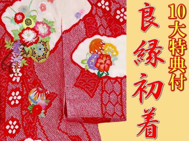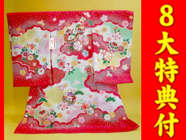 お宮参り特選着物正絹(初着・産着)女児G8-86 総絞-本絞-花車に手毬・華柄 豪華10大特典付