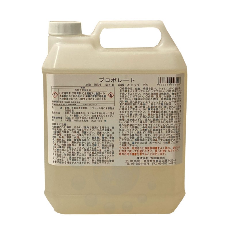 シロアリ対策 業務用 プロボレート 4L ホウ酸塩 低臭 水性 クリア 防腐 防虫 白蟻予防剤 『福岡』のお客様より 1点 ご注文をいただきました!