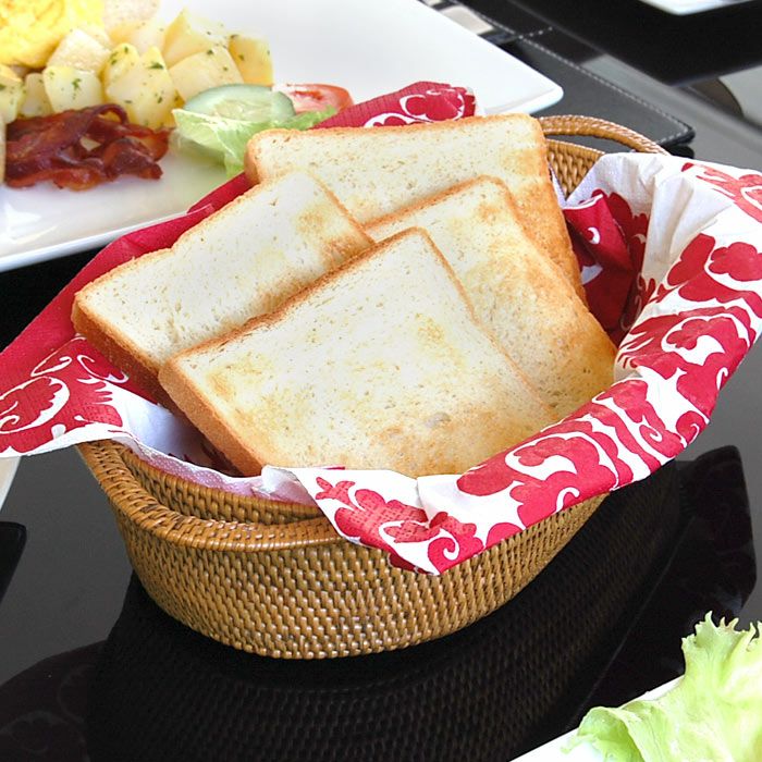 アタで編まれた楕円形の取っ手付きバスケッ...