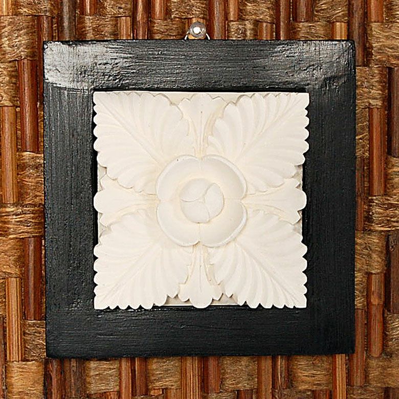 木彫りのアジアンフレーム付きフラワーモチ...
