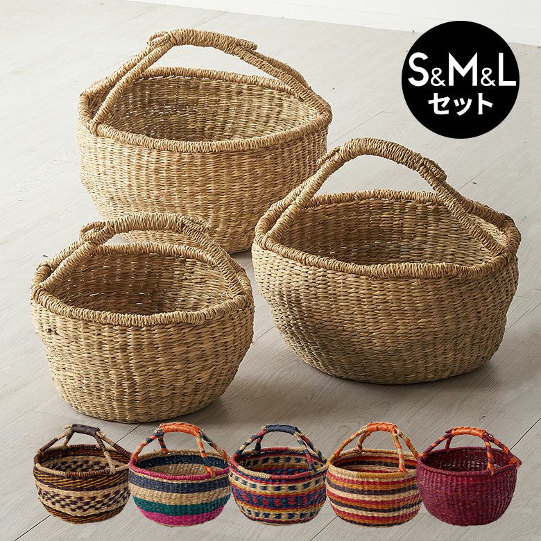 バスケット シーグラス 持ち手付き S M L 3...