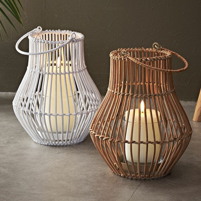 ランタン 籐 ラタン ガラス 手持ち付き ラ...