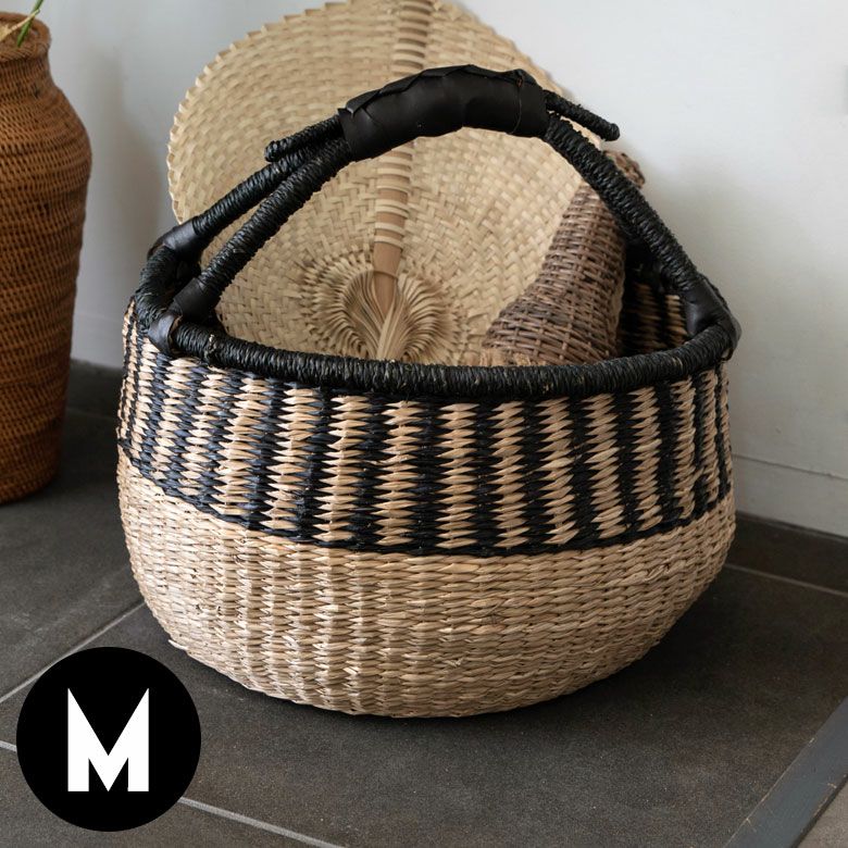 パンダンで出来たフタ付収納ボックス M 2色...