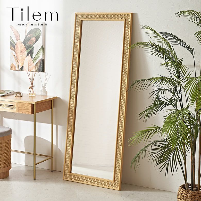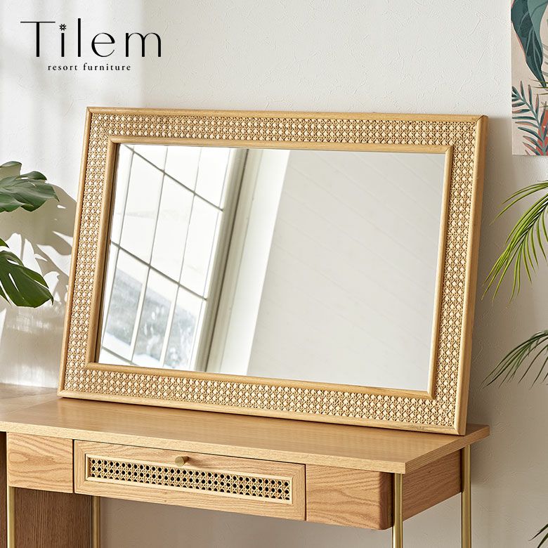 オーク材のナチュラルな木目とラタンメッシ...