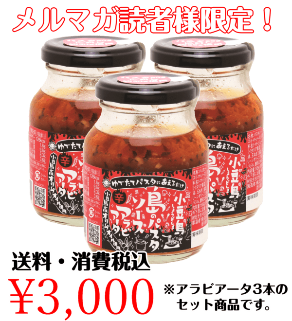 【メルマガ会員限定】島のパスタソース アラビアータ 3本セット のご注文が入りました! |