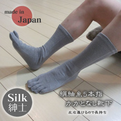 シルク紳士用絹の【5本指】くつ下 ■チューブタイプかかとなしで長持ち■日本製のご注文が入りました! |