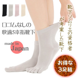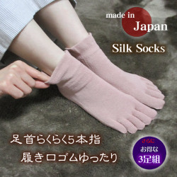 【同色3足組】履き口ゆったり婦人用シルク【5本指】くつ下(日本製)のご注文が入りました! |