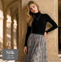 着痩せなシルエット【50%OFF】シルク70%コットン30%リブ織ハイネックカットソー【黄金比率】やさしく体に...のご注文が入りました! |