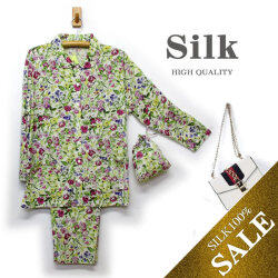 婦人ニットシルク襟付き前開きパジャマ【これはお得42%OFF】人気のボタニカルフラワー柄【プレゼントにも...のご注文が入りました! |