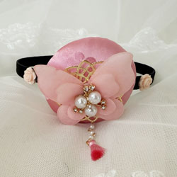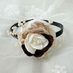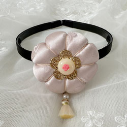 韓国子供カチューシャ 金彩つまみ花チョットリ