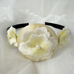 韓国子供カチューシャ 刺繍フラワーイエロー